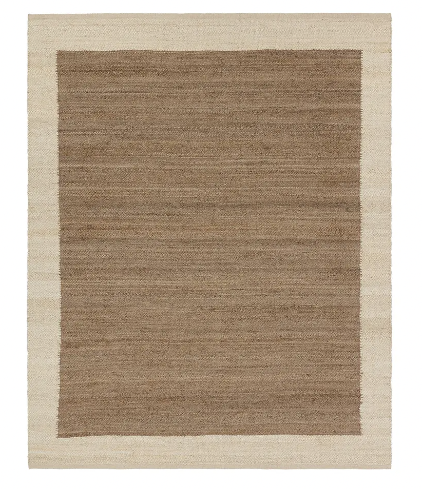 The Hanover collection features timeless, textural designs that anchor traditional and contemporary spaces alike. These woven natural jute rugs showcase a classic border design and neutral colorways for effortless versatility. The Query rug utilizes a lighter and darker brown to create contrast. Theis handcrafted accent works best in low traffic areas of the home.